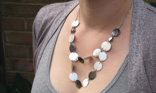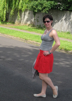 Today's second-hand outfit was approximately £13 (skirt £5, cardigan £3, singlet £5) - less the shoes/necklace. I had to cheat a little and wear a retail singlet as I don't have many second-hand tops that a) are fitted and b) the right colours.