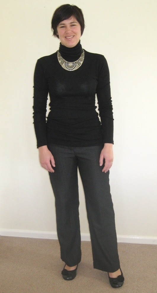 As most workwear on a daily basis in New Zealand tends to be less formal that suits, I started with a pair of Monsoon charcoal wool, high waisted trousers and my favourite No1 Shoe Warehouse leather court shoes.