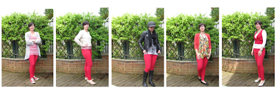 So here goes my first challenge to myself - red Warehouse jeggings (in hindsight I wish I'd bought red jeans instead of jeggings so I could have worn a belt and shown the waistband, but live and learn).
