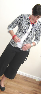 I've shown the cardigan buttoned two ways because of a discussion I had with someone the other day about what a difference it makes just trying it with different buttons or with a belt.