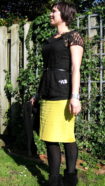 Well onto the outfit! It's another Wednesday work day and I'm embracing spring and today's beautiful sunshine! I found this gorgeous yellow/lime skirt opshopping last week ($6.50) and the top was a birthday gift to myself with a gift voucher from glassons ($30). You'll be pleased to know that I went and chopped the glaring white label off after I took these pics!