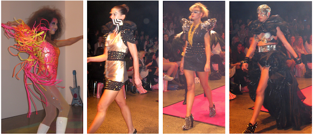 After a busy and fun afternoon 4.30pm I went off to the Phoenix Cosmetics show. The theme was Truly Outrageous (think Gem and the Holograms) and despite my expectations, the show really was the whole deal. Wow it was sparkly and fun (think neon, 80's, spikes and metallic) - and from my pics below you'll see that it really was a team effort (top to toe).