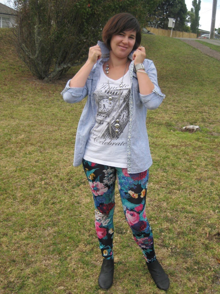 What I wore: Temt floral tights, Thrifted button up, Matalan white t-shirt, Farmers silver necklace, Asos chelsea boots.