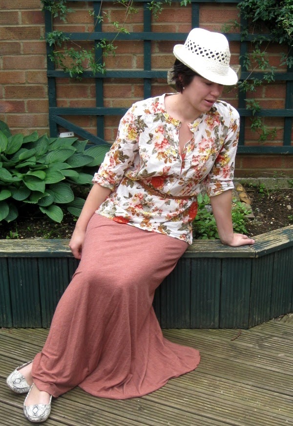 | Primark coral maxi skirt, Tesco floral shirt. |