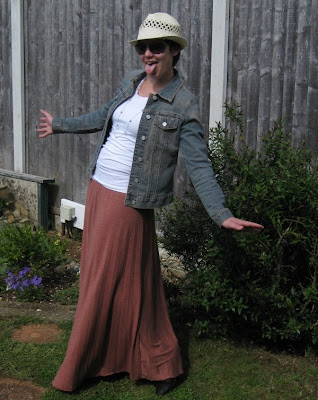 | Matalan straw hat, Matalan white t-shirt, Primark maxi skirt, Thrifted necklace |
