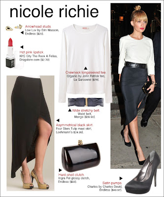 Today's inspiration came from this pic of Nicole Richie - another petite lady who is always very fashionably dressed. Maybe I'll even try a bright lip colour like this before I head out later. Not sure I will master the celeb 'own the world' walk though!