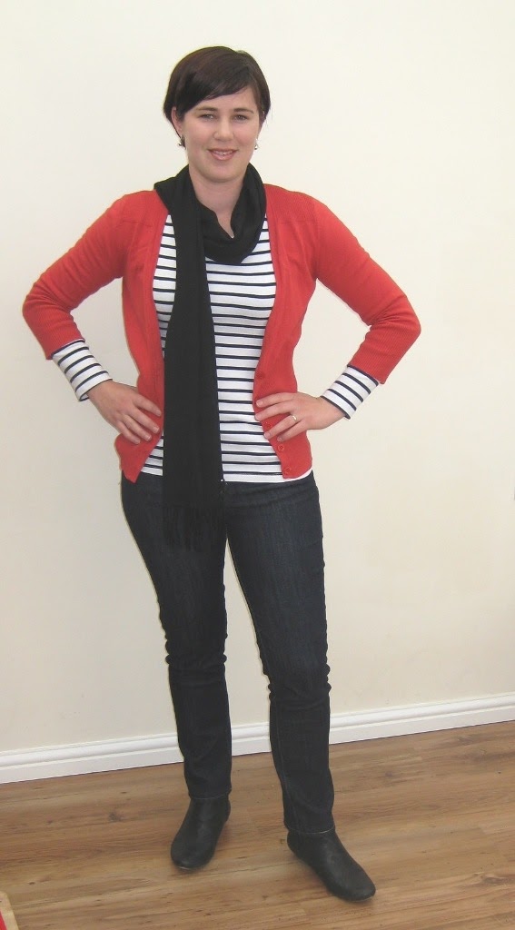 I love bright colours so I tried to show some other ways of wearing this that weren't black and white. My favourite outfit is probably the pale jeans option - funny how despite the adage of dark colours minimising your bottom the length of the top also makes a massive difference - that's what makes the pale jeans look the most flattering I think.