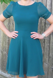 Here's the knee length dress on it's own - fitted waist, flared skirt, runched sleeves, high neckline. I think I like the eclectic winter layered look best. Which is your favourite? Any other ideas?