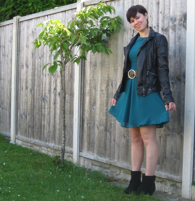 | Zara biker jacket, Postie Plus wide belt, Tesco black suede booties. |