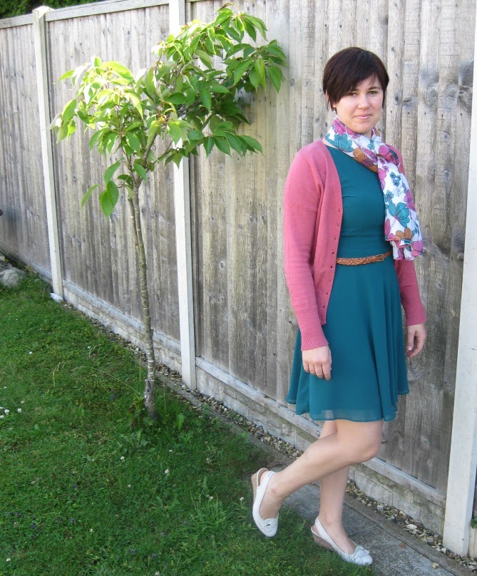 | So comfy I'll wear this one today! Cotton on pink cardigan, $2 shop scarf, thrifted shoes, free tan belt from somewhere. |