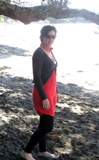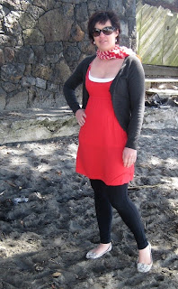 The trusty silver leaves finish off yet another outfit I know. I saw Katie from Kansas Couture wearing a very similar outfit the other day and had heaps of fun trying out her look - as a bonus it was super comfortable and so on trend with the colour-blocking :)And to finish off the weekend it's been a busy Sunday in leggings, a summer dress and one of my favourite striped red scarf. Of course no good weekend is complete without a trip to one of our local cafe's and a walk on the beach. Perfect!