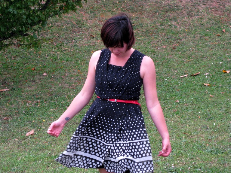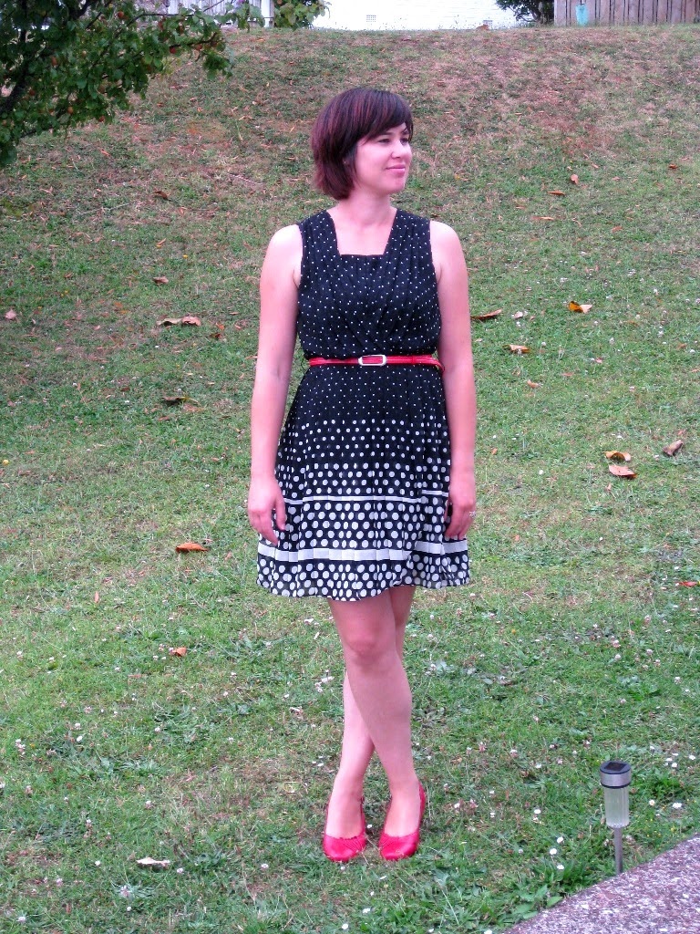 I have definitely been guilty of taking myself to seriously, especially when it comes to work wear. But when I found this lovely floaty dress at my local thrift shop I couldn't go past the polka dots. The dress is actually a lovely structured shape, but with a floaty layer over top. Perfect for work and creating a flattering hourglass shape, perfect to wear with my Dorothy red slingbacks and red belt, and perfect for the very hot and humid weather this week.