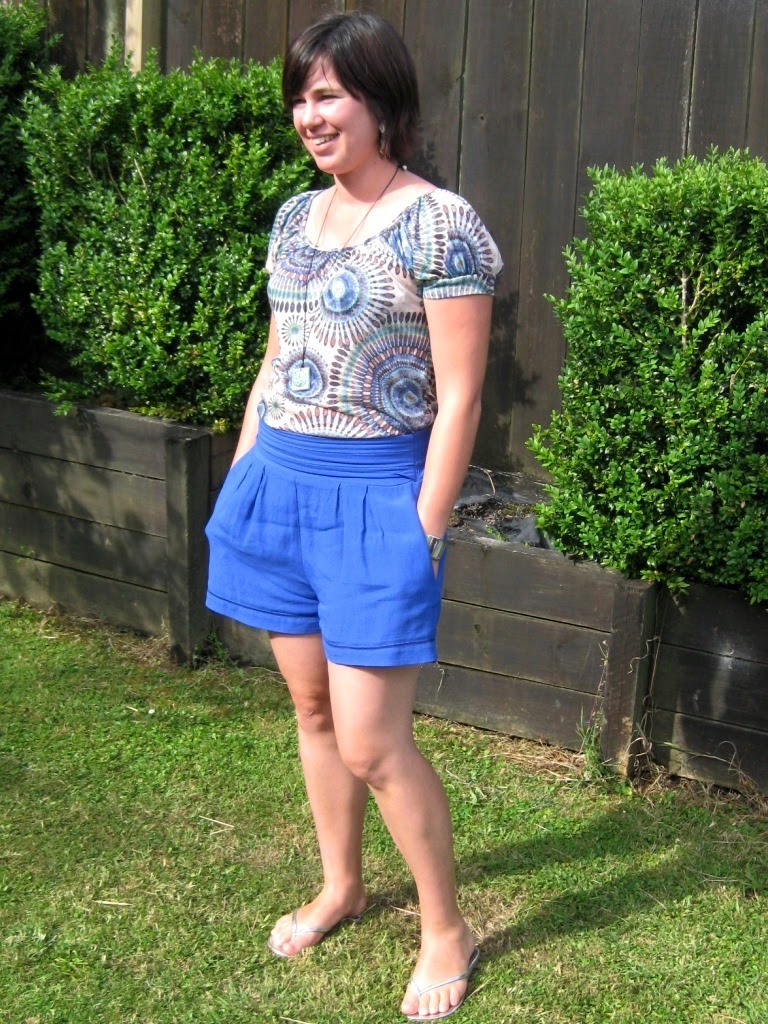 Outfit details: Kmart cobalt blue shorts (thrifted), t-shirt (very old and unknown source), mint lion pendant (thrifted), Cotton On silver jandals.