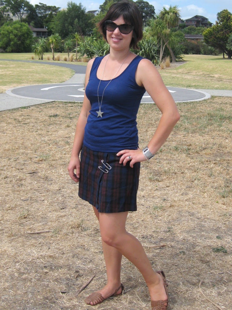 Last time I wore this tartan or plaid skirt I remember thinking how out of my comfort zone it was - dark burgandy and navy together! Anyway Day 3 of the Fabruary style dares wasn't too tricky - it was smoking hot today though so despite having a lovely grey cardigan to wear over top I couldn't cope. I'm looking forward to winter when I'll definitely be rocking this skirt more like this gorgeous lady below!