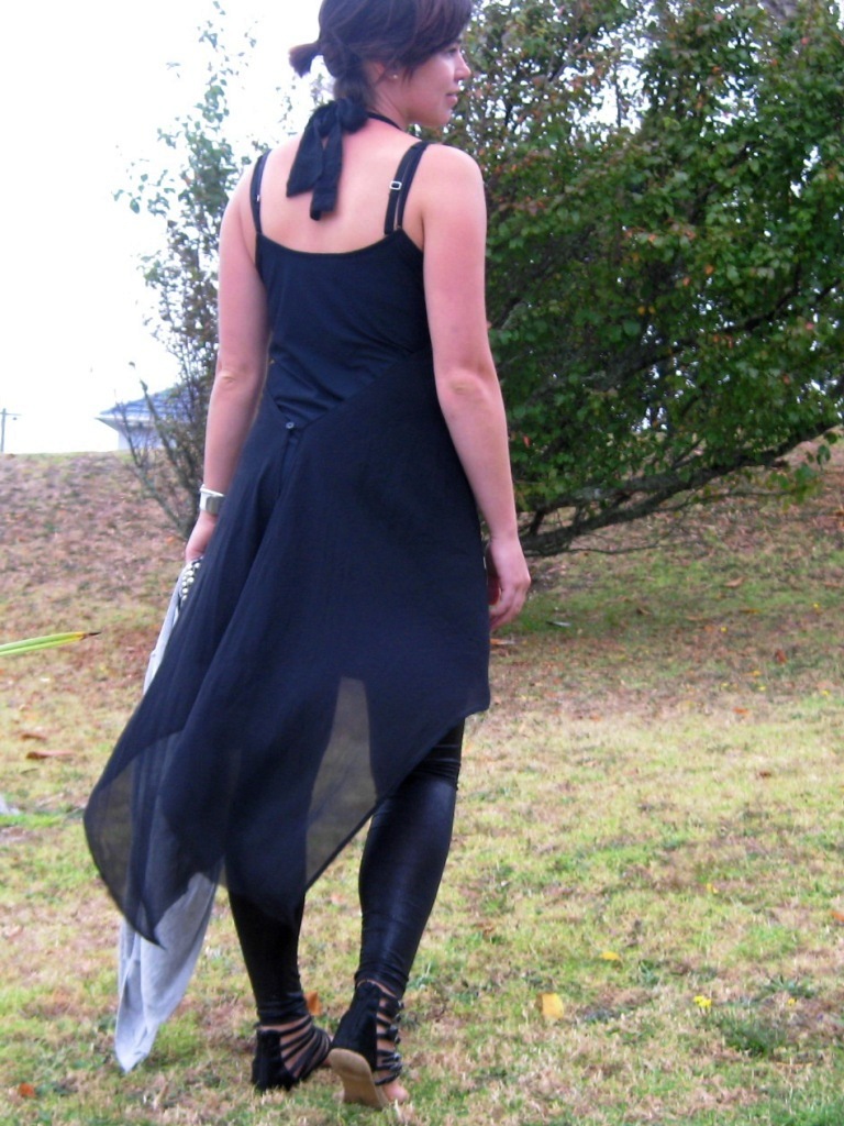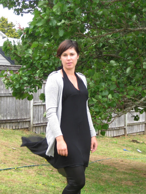 Unfortunately my self taken pics don't do this outfit justice but I really really liked it. I picked up this label-less chiffon top/dress for $1 at my local Sunday markets. Over a slip and my leggings I felt very pretty. The various black textures I thought just worked.